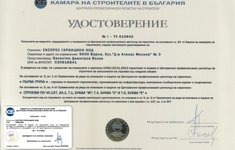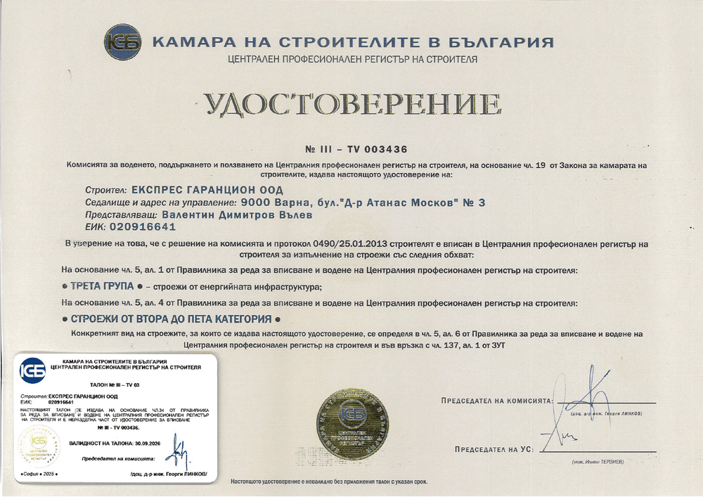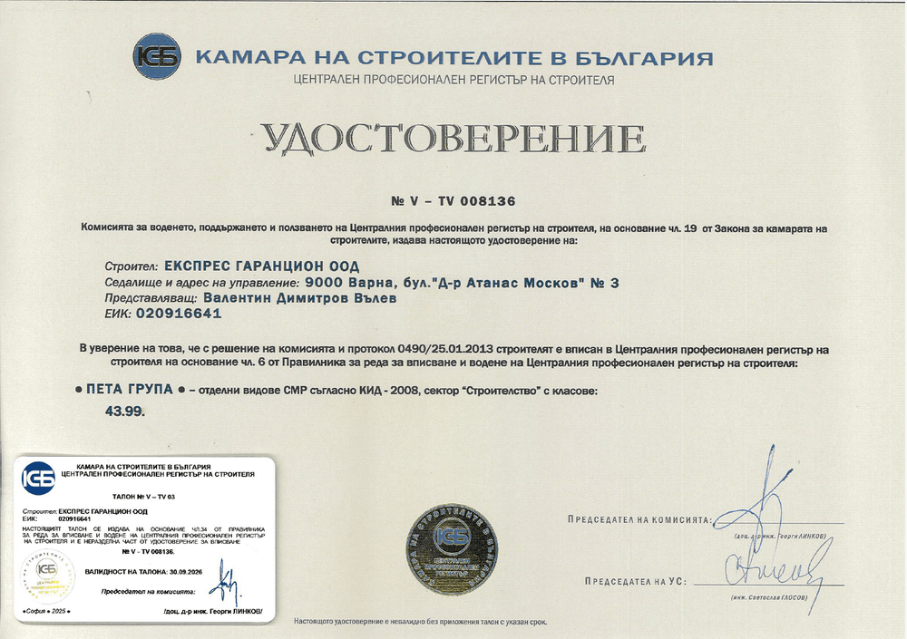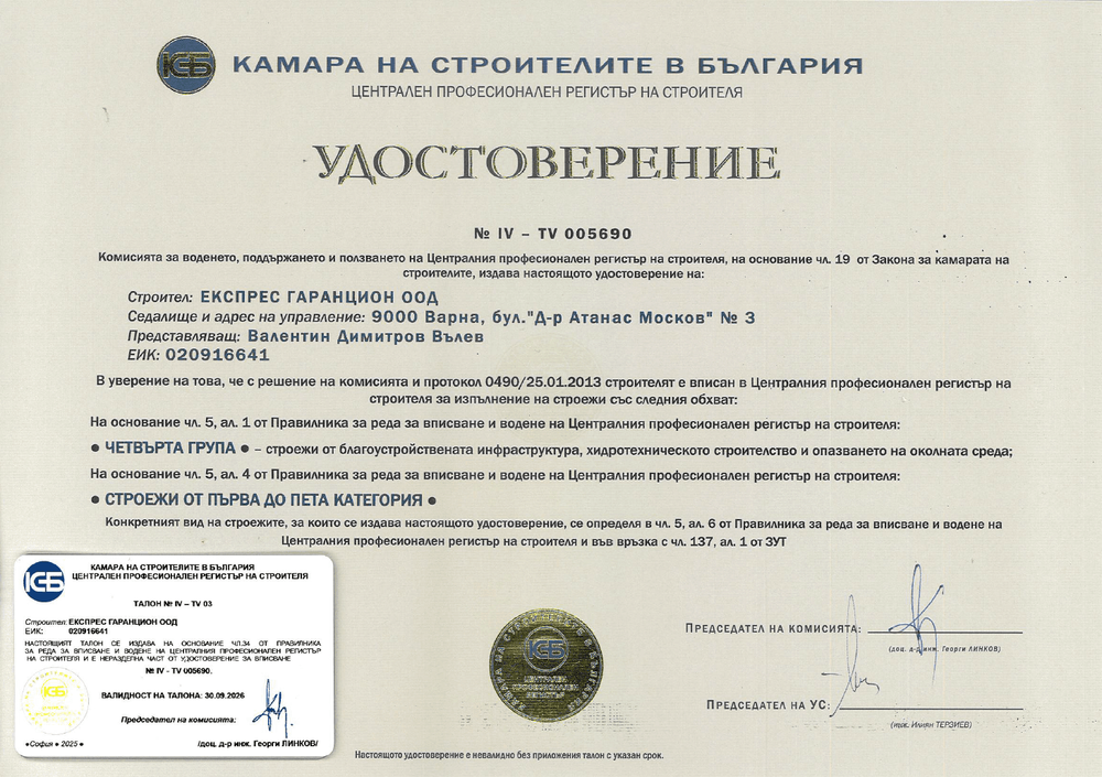 Експрес Гаранцион ООД е водеща строителна компания с над 35-годишен опит и обществено признание във Варна и страната.